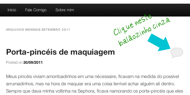 1) Escolher qual post você quer comentar. Eu escolhi o post ” Porta- pincéis de maquiagem ” para ilustrar esta explicação.