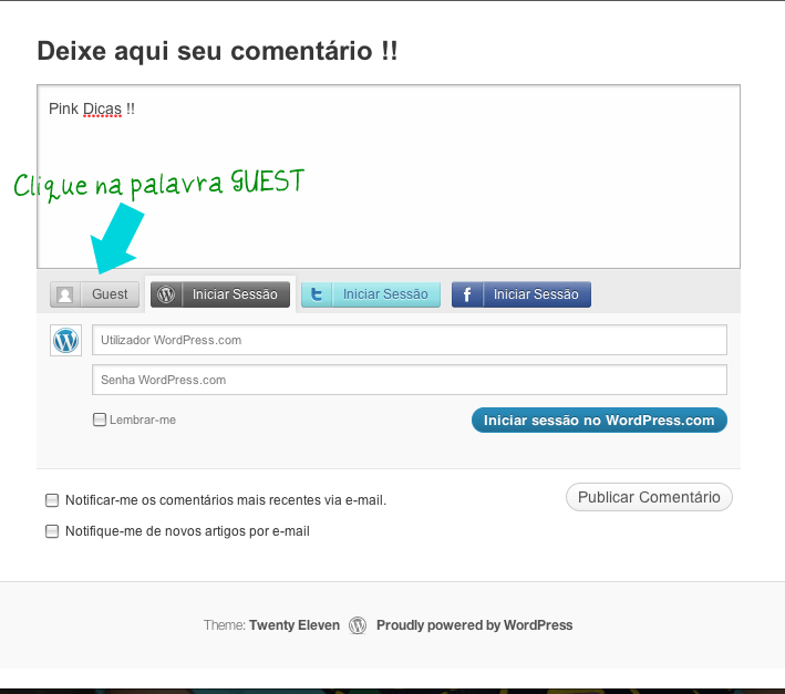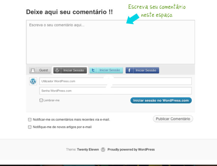 3) Em seguida abrirá outra tela, como na foto abaixo! Agora escreva seu comentário neste quadro que a seta azul esta indicando.