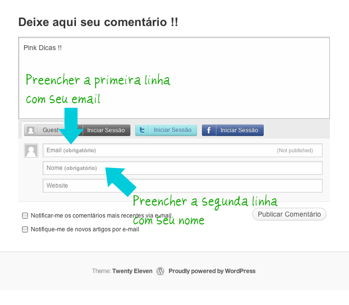 Resolvi fazer este post para esclarecer como fazer comentários no blog. Estava bem complicado e eu não sabia, mas minha cunhada me avisou e eu corri para arrumar , “Obrigada, Quel! “. Agora vai ficar fácil de deixar seu comentário e eu vou amar ler cada um deles, afinal eu não faço o blog só porque gosto de escrever mas sim para compartilhar com vocês cada coisinha que aprendo e descubro.