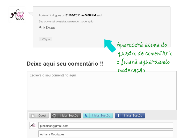 7) Em seguida seu comentário aparecerá como na foto abaixo, e ficará esperando moderação (ser aprovado), assim que for aprovado aparecerá logo abaixo do post comentado.