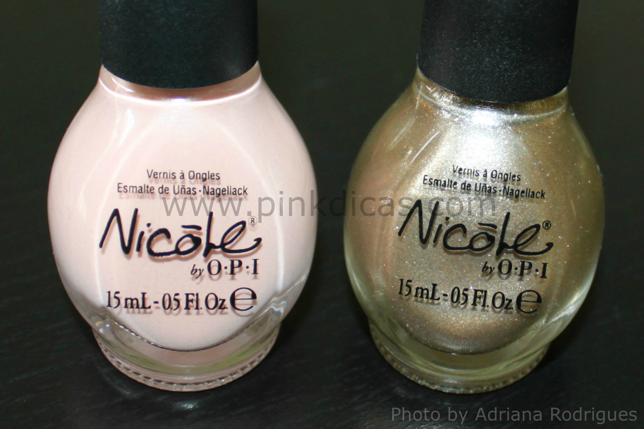 O clarinho é um rosa pessego, cobre super bem com duas camadas, faz parte da coleção Nicole by OPI Kardashian Kolor e o dourado faz parte da coleção Nicole by OPI Ice Color, tem post desse esmalte aqui e da coleção Ice Color aqui.