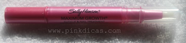 Uma delas é a Maximum Growth Cuticle & Nail Treatment – Sally Hansen, ela serve para hidratar unhas e cutículas e amo seu poder de hidratação e praticidade na hora de carregar, ela é um óleo mas absorve muito rápido.
